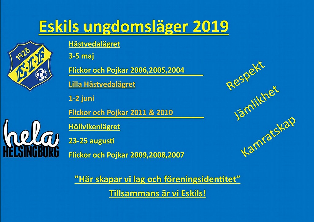 Här presenteras datumen för årets ungdomsläger med Eskils.