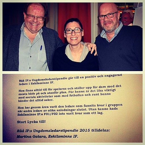 På HFA:s (Helsingborgs Fotbollsklubbars Allians) årsmöte igår fick Martina Gatara ta emot Råå IF:s ungdomsledarstipendie för sitt stora engagemang för våra tjejer i F01/02 och sitt fantastiska arbete för föreningen.