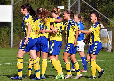 Foto: Bildburken.se (Målskyttarna Ronja Kindblad in action och Maja Olofssons målkramar)