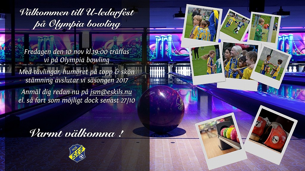 I sedvanlig ordning avslutar vi säsongen på bästa sätt tillsammans. Detta året gör vi det på Olympia bowling, har du som ledare inte anmält dig gör det genom att skicka ett mail till Jimmie på kansliet