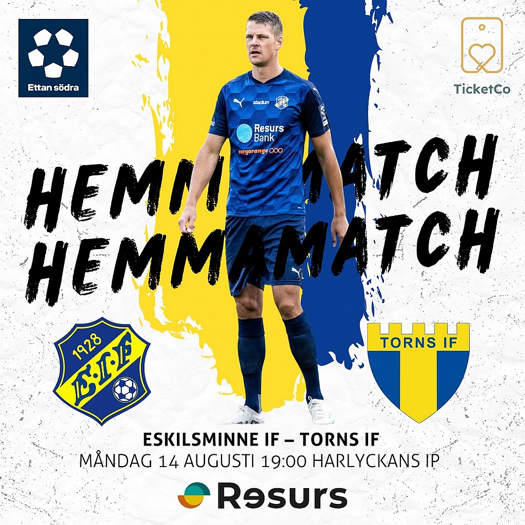 Eskilsminne IF tar på måndag emot Torns IF i nytt Skånederby på Harlyckans IP i Ettan Södra. Det är en match mellan två lag som verkar ha glömt hur man förlorar, då Torn har tio raka utan förlust och Eskils har nio. Ska det bli ännu en oavgjord match för Eskils eller ska något lag gå segrande ur striden? Kom och stötta gulblått på Harlyckans IP!