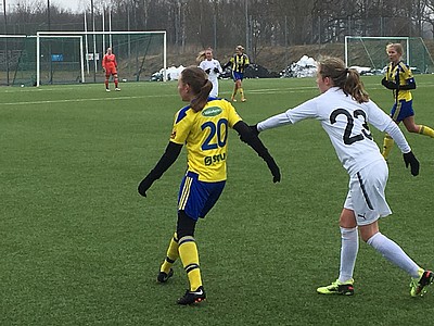 Här kom en startelva med spelskickliga, tekniska, snabba och fysisk starka spelare som bara behövde en knapp kvart på sig för att ta kommandot i matchen. Eskils hade annars matchens första vassa chans då vänsteryttermittfältaren Malin Forssell drog upp ett anfall på kanten, spelade in till Julia Nyberg Spets som nådde Jasmine Hansen som tyvärr inte fick till avslutet riktigt.