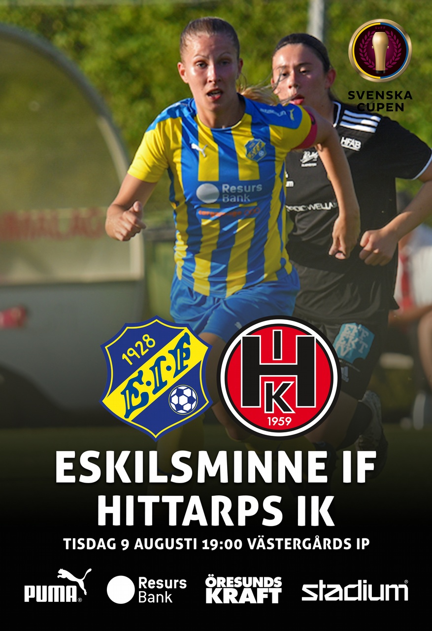 Derby i Svenska Cupen! Ikväll tar Eskilsminne IF emot Division 2-laget Hittarps IK på Västergårds IP klockan 19:00. Eskils kommer från sex raka segrar i seriespelet och jagar i toppen av division 1. Hittarps IK krigar även de på i toppen av sin serie och hoppas på ett återtåg till Division 1. Senast besegrade man IFK Osby med 7-1. Vi hoppas på storpublik i solen och en härlig derbyseger för vårt gulblå lag!